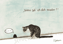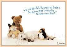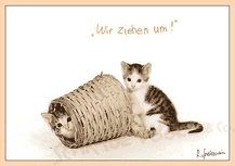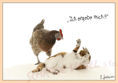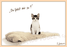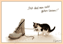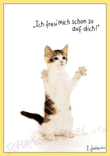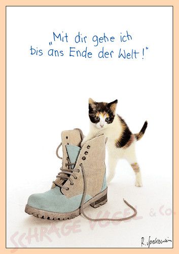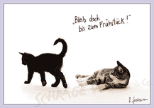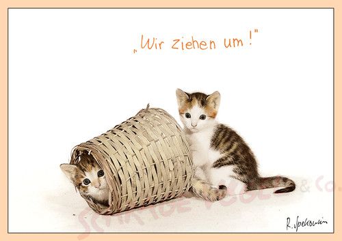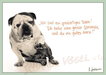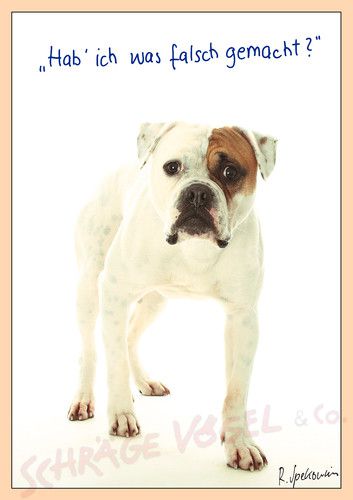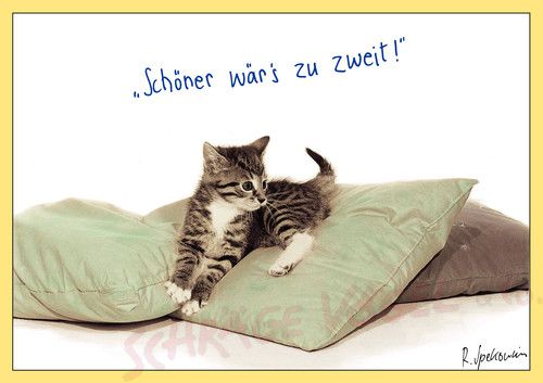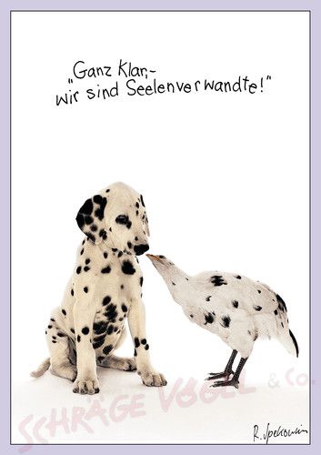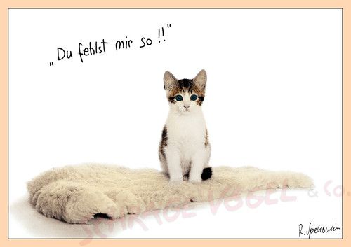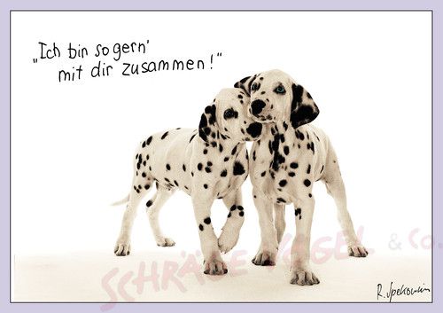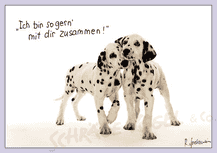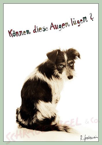 Die Tiermotive von Hunden und Katzen sind mit der Fotokamera „live” vor einer weissen Leinwand aufgenommen-, und anschliessend mit witzig- frechen Text kombiniert worden.